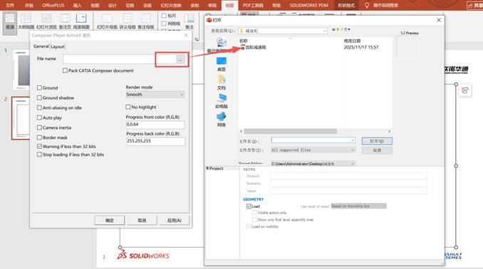 这一过程的核心可以概括为:“solidworks Composer编辑 -> 控件集成 -> PowerPoint交互”。下面我们将分步详解。